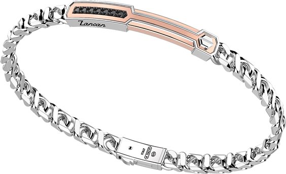 Bracciale in argento con placchetta di oro rosa e Spinelli neri
