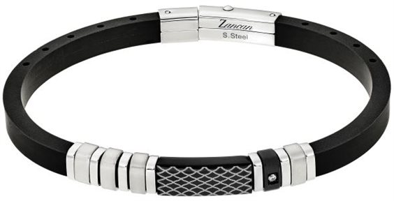 Bracciale in silicone con targa composta da elementi in acciaio lucidi satinati e pvd nero + piccolo zircone.