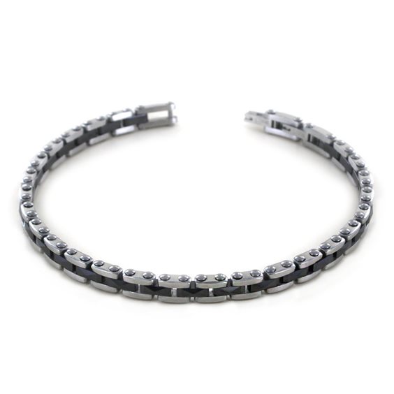 Collezione: Hi-Tekh 2.0 Materiale: Acciaio Colore: Acciaio Lunghezza catena (cm): 21 BRACCIALE A ELEMENTI IN ACCIAIO E VETROCERAMICA NERA