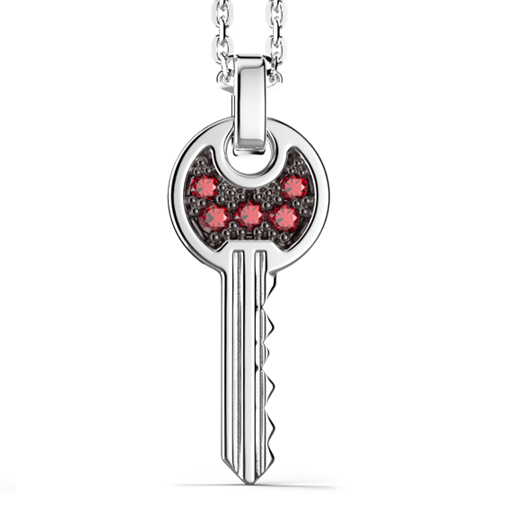 COLLANA IN ARGENTO CON CHIAVE CON PAVE' DI SPINELLI ROSSI