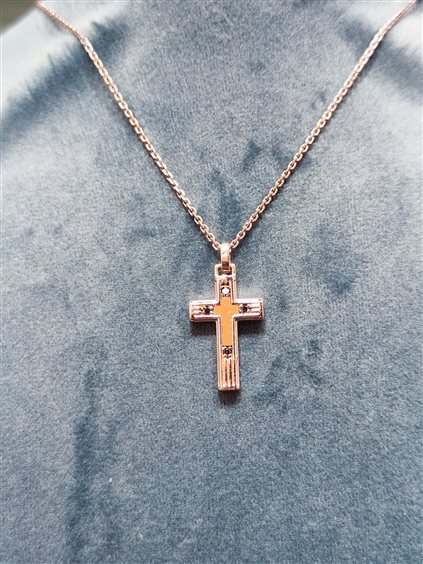 COLLANA IN ARGENTO 925, CON CROCE IN ARGENTO CON LAMINA IN ORO 750, E SPINELLI NERI