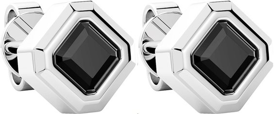 Orecchini in argento 925 a lobo a forma esagonale con zircone nero. Finitura lucida.